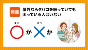 まずマンション被害、ベランダ喫煙の絵が出ます。一人が加熱式タバコを吸っているのも描写が細かいですね。