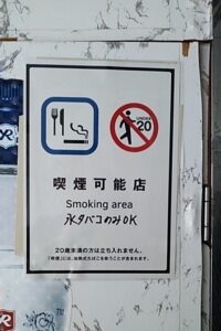 先の画像は東京都町田市の、水タバコ専門店のようですが、次の店は当機構の近くで、ふつうの飲食店で吸わせるとしたものです。