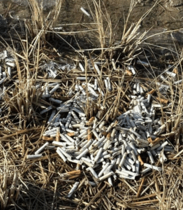 田んぼの奥に大量の吸いガラが! 「人としてどうなのか」 長野県北安曇郡