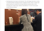 2022年11月11日 / 最終更新日時 : 2025年3月21日 受動喫煙撲滅機構 ニュース(全) 喫煙者に、吸わない人への気づかいはどれだけあるのか? “喫煙者は肩身が狭い”という手アカのつきすぎた言葉を聞くと、私たち受動喫煙の被害者はいつも引っかかります。 「受動喫煙で、ずっと肩身が狭い思いをしてきたのは、こっちだ!」と主張したいものです。 このたびタバコ会社に […]