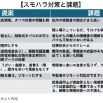2024年6月3日 / 最終更新日時 : 2024年6月3日 受動喫煙撲滅機構 ニュース(全) 職場のタバコ臭被害=喫煙者からの三次喫煙被害に、管理者はどう対応すべきか 弁護士見解 職場のタバコサボリ問題、とくに戻ってきた喫煙者からのタバコ臭=三次喫煙がよくネット記事で取り上げられていますが(→当サイトでも多く紹介、主なものを末尾にを記載)、タバコ問題も多く取り上げている法律サイトで、最近とくに注 […]