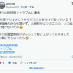 2025年6月23日 / 最終更新日時 : 2025年8月25日 受動喫煙撲滅機構 ニュース(全) 新幹線の女性トイレで喫煙し警報が鳴る! 車掌が「タバコ吸いましたね?」と呼びかけ、あとで出てきたのは男性!? またまた新幹線での喫煙(なぜか続くものですね)、よくあるトイレの警報機は本当に作動するのかな、と思っていましたが、ちゃんと鳴るのですね。 そして驚いたのは、その女性トイレから出てきたのはなんと男性だったとのこと! こ […]